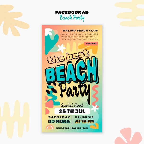 Beach Party Vertical Advertising Poster PSD Template for Beach Party Poster Design