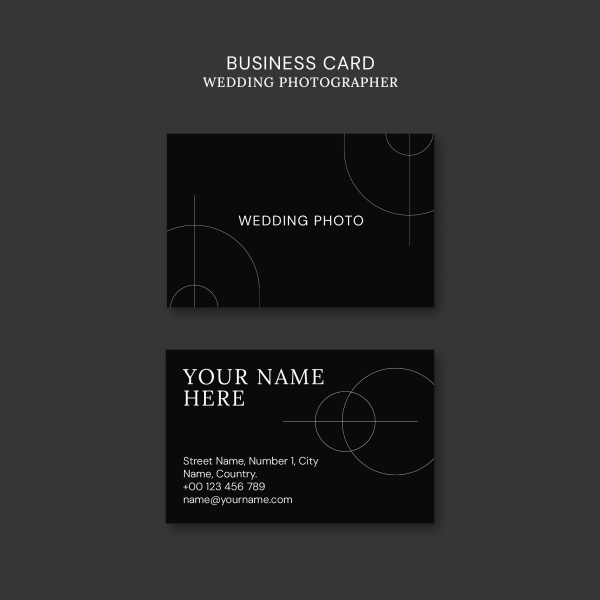Black minimalist style wedding photography business card template suitable for wedding photography business card design