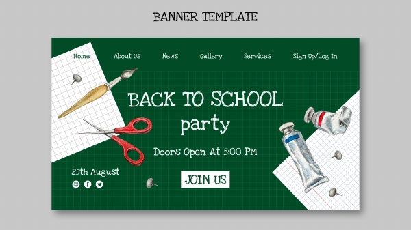 This work provides pictures of the homepage design for the start-school season, with the format PSD and the file size of 6.7M;