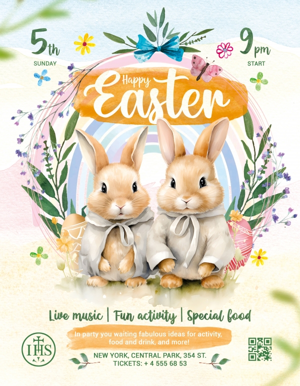 HD PS design material poster template cover image PSD material Easter cartoon rabbit illustration poster design