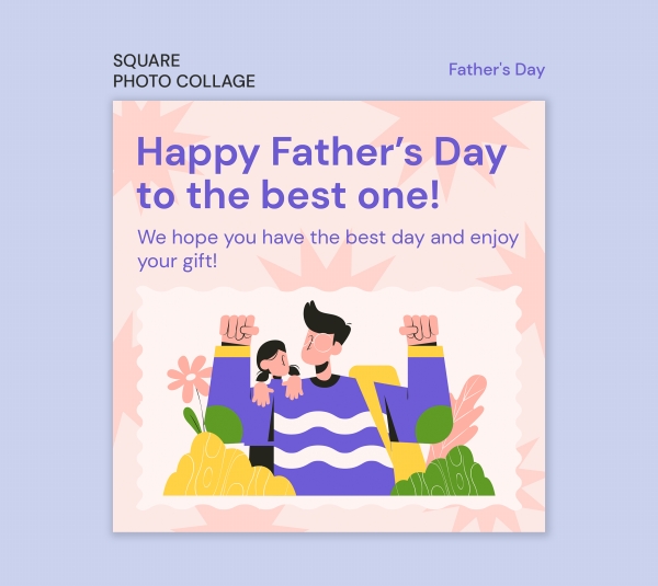 HD PS design material poster template cover image PSD material Father’s Day square cartoon collage PSD template