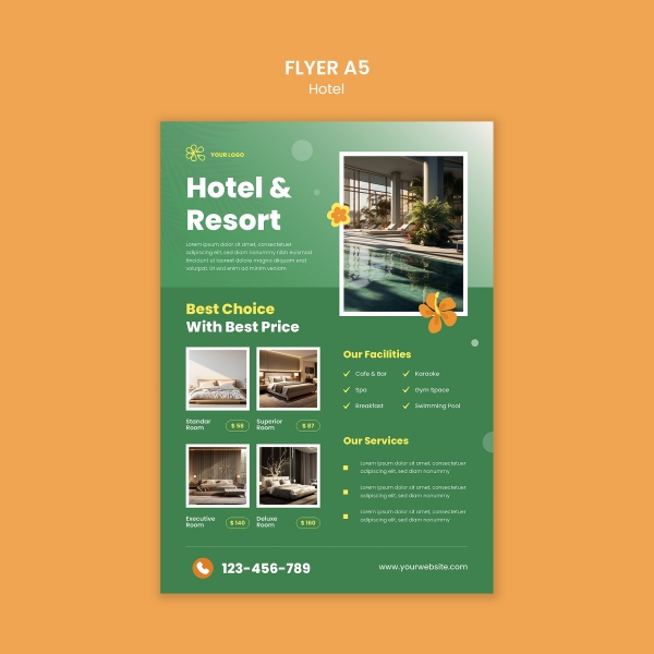 Green Style Hotel Discount A5 Flyer Design is suitable for hotel Discount Flyer Design