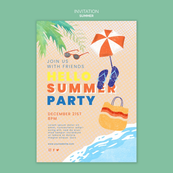 HD PS design material poster template cover image PSD material Hello summer party poster source file design