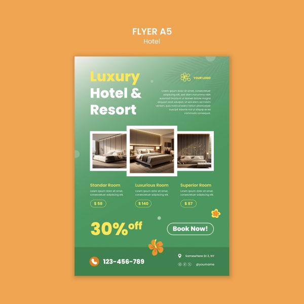 Hotel Accommodation Discount A5 Flyer Design is suitable for hotel discount flyer design
