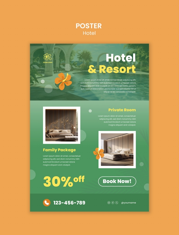 Hotel accommodation discount poster PSD source file design is suitable for hotel discount poster design