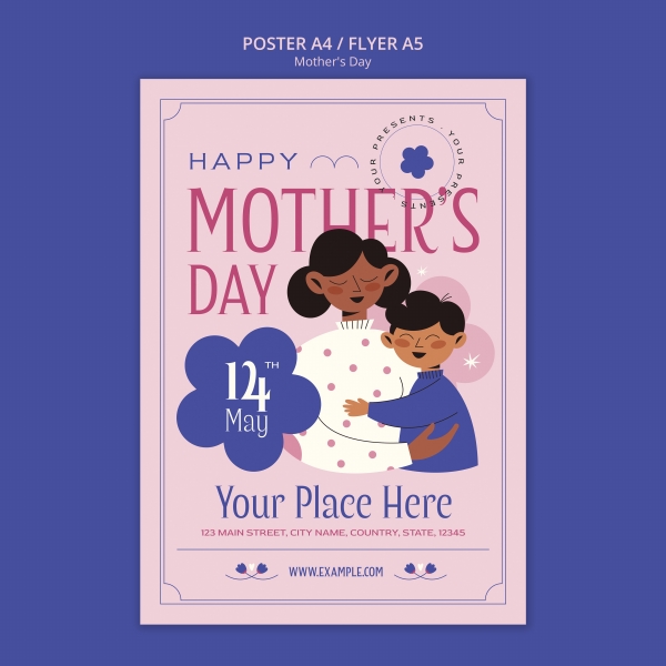 Mother’s Day cartoon illustration style flyer poster design is suitable for Mother’s Day flyer poster design