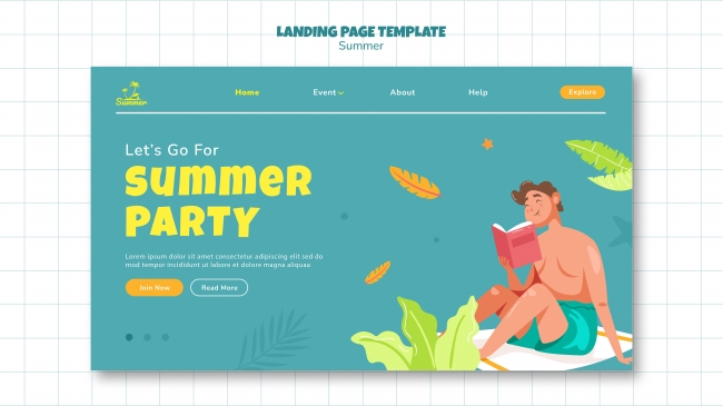 HD PS design material poster template cover image PSD material summer party theme login page template design