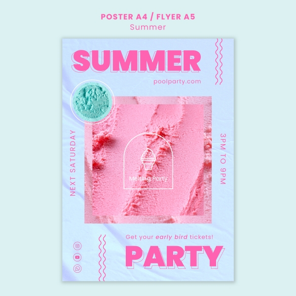 Summer pink party themed flyer poster material is suitable for summer party flyer poster design
