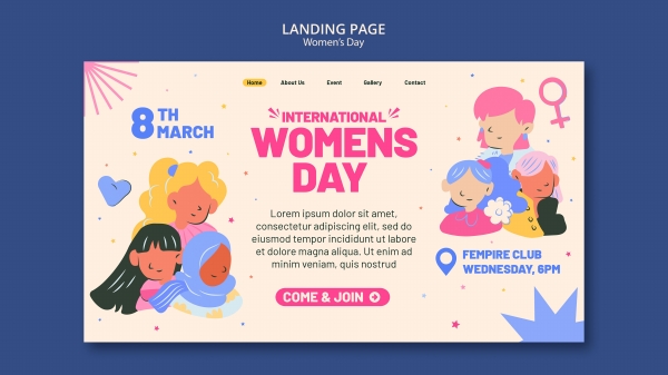 HD PS design material poster template cover image PSD material Women’s Day cartoon theme login page PSD template
